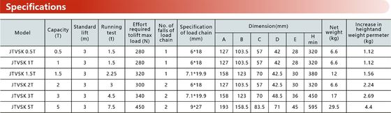 Compact et léger:L'unité de 0,5 T a un poids net de seulement60,6 kg, ce qui le rend extrêmement portable tout en conservant la résistance d'unélévateur à chaîne industriel.
